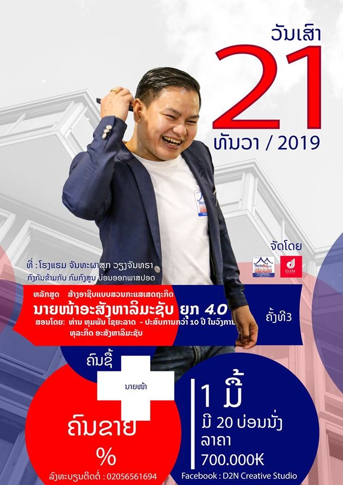ມາສ້າງລາຍໄດ້ເສີມດ້ວຍນາຍຫນ້າອະສັງຫາໃຫ້ສຳເລັດ ເຮັດແນວໃດ ຫລັກສູດນີ້ມີຄຳຕອບ ສໍາມະນາ: ນາຍຫນ້າອະສັງຫາລິມະຊັບ ຄັ້ງທີ 8...
