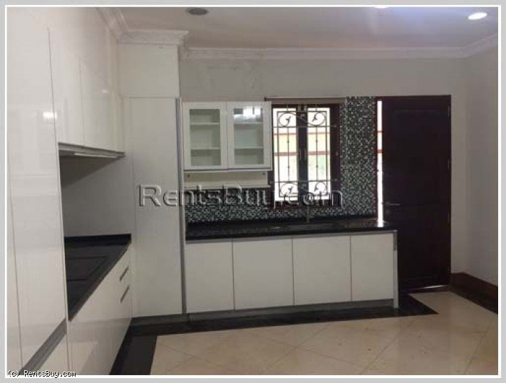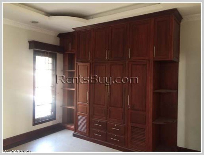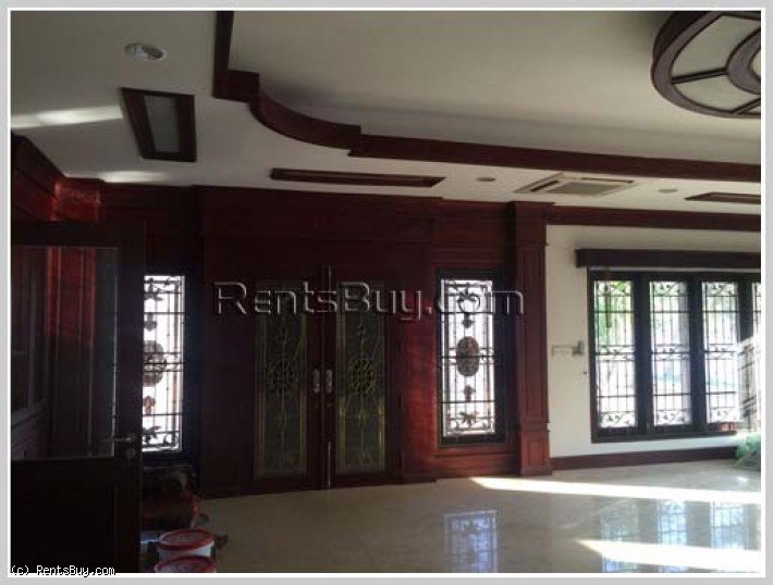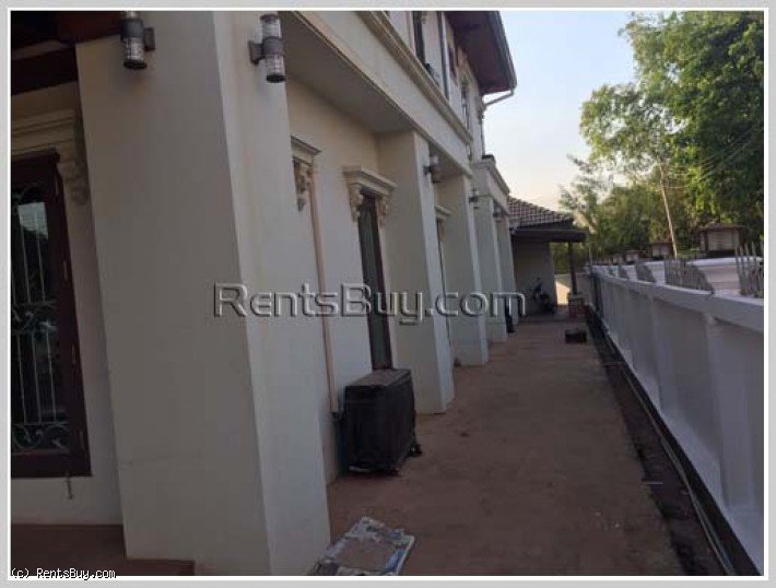 Modern house with fully furnished for rent near Lao American College. House consists of 6 comfortable bedrooms, 7 clean bathrooms, spacious kitchen, living room, car parking space with concrete patio and strong fence. In vicinity, there are shop, school, college, gasoline station, restaurant, market and not far from Patouxay.