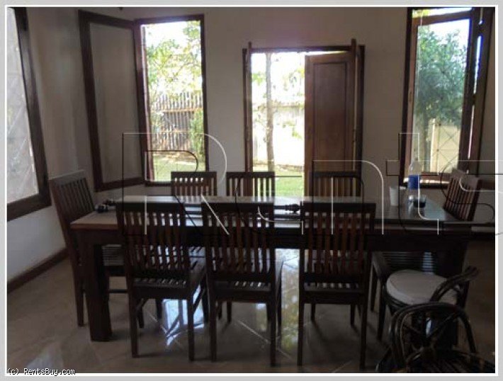 New house with fully furnished in quiet area for rent, located in Lao community near Law Faculty of National University of Laos, about 10 minutes drive to VIS, fitness center, less than 5 minutes drive to golf club, fresh market and hospital.