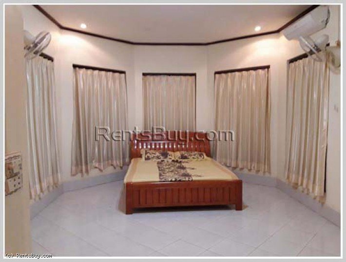 The house consists of 3 bedrooms and 3 bathrooms with fully furnished, large parking space and large garden. The house is on the north of city center less than 10 drive from the center. In this neighbor, Thongkhankham and Chinese markets in 5 minutes, Mekong Night market about 10mn and National University on the north in 20 minutes. Suitable for residential, office and etc