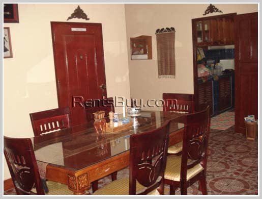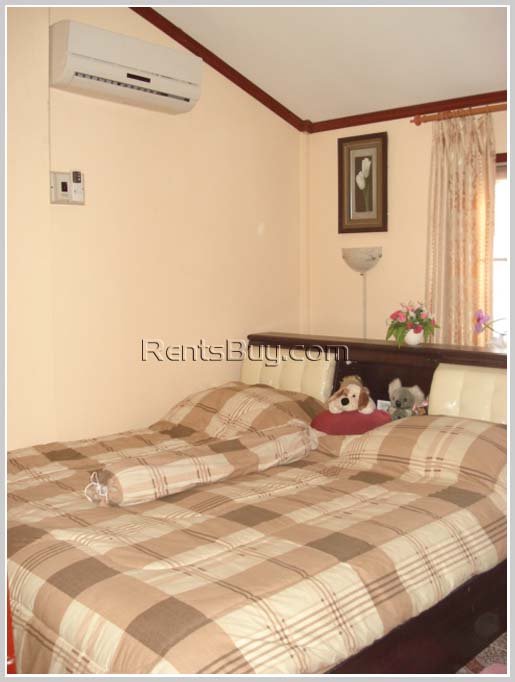 MODERN Aus-Lao Style House Fully furnished, Ready to move in.Nothing to buy! Just move straight in!. Only 10 minutes drive from That Luang Stupa, close to market area and Lao community. 3 bedrooms, Lounge, Dining room with Cable TV, NEW Air-conditioning, a Spare Room, 2 bathrooms with hot shower, Kitchen with a Refrigerator, Microwave, Kitchen Appliances, Bed Linen, NEW Washing Machine, Vacuum Cleaner, Car Port. This house is suitable for the tenant who has motorbike or small vehicle. The furniture will be given and taking over the rental business.