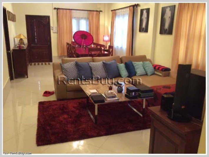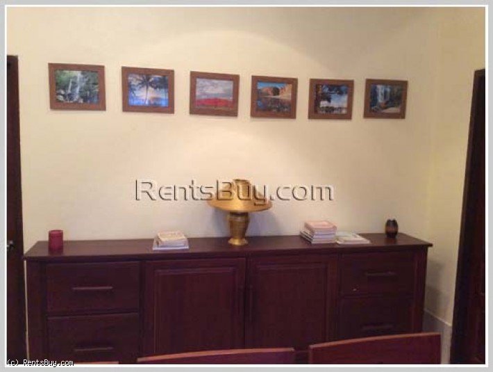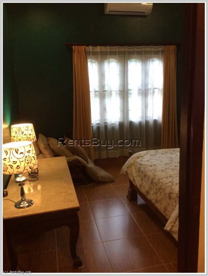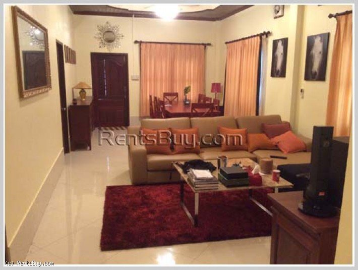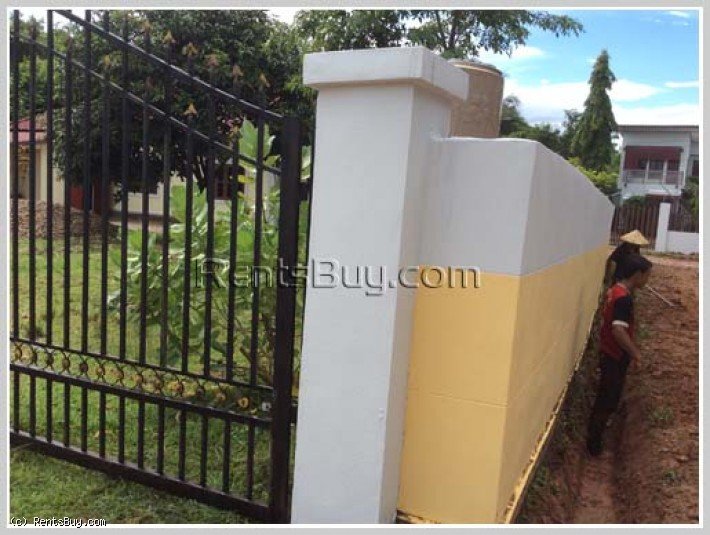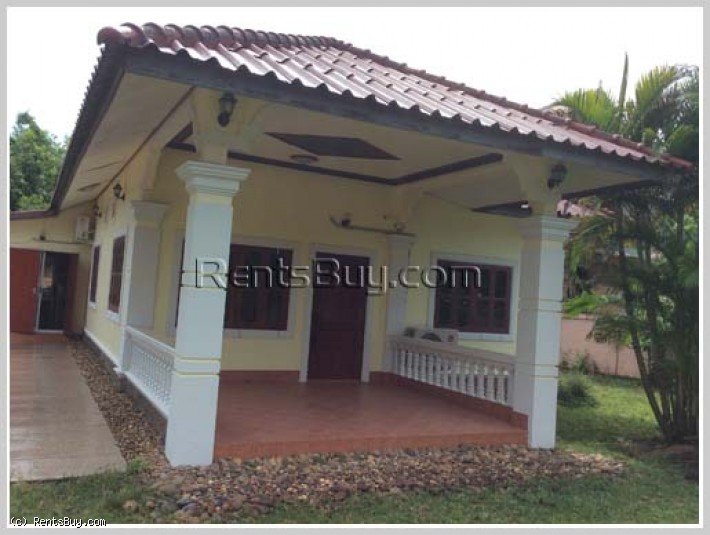 land size 23x34m, house size 8x12m, fully furnished, 3 bed rooms, 2 bathrooms, 1 storage/external bathroom, 2 kitchens, nice living room, concrete fences, 4 CCTV cameras, roofed car park, large courtyard, air conditioners and fans installed in every room; located at Nathom village, close to Ban Soufa resort and National University of Laos, same soi of Heartbeat night club and restaurant and the famous Nathom 500 Kip BBQ (local beer pub), negotiable price.
