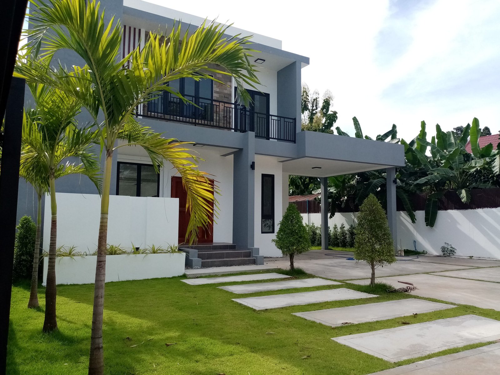 Nice and modern Villa for sale, it is a 2-floor house with 3 bedrooms, 4 bathrooms, large living room and kitchen and a park for 2 cars. The house built in the area of 476 square meters and the house size is 230 square meters, and there is a large courtyard in the front and planted decorating trees and flowers along the fence and footsteps.
