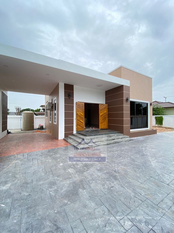 One Floor New house expertly designed to fit within every lifestyle, there are 2 bedrooms, 3 bathrooms, 1 Kitchen room and 1 open airy foyer hall living room and spacious parking, the house is located away from the main road about 800 m.  It is a new fast developing zone where lots of restaurants, high-rise building located and several government offices and private companies located in this zone, it’s about 5 km to City center and Mekong river.