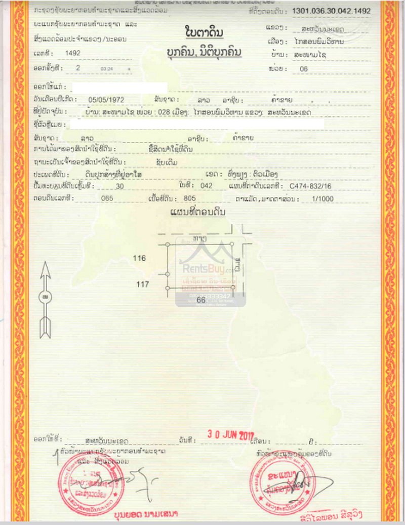 This 805 sqm land, including an existing house, located at Sanarmxay Market near the Bus Station in Kaysonephomvihane District, Savannakhet Province, presents a compelling investment at USD 95,000. Its strategic position in Savannakhet, a burgeoning economic hub along the East-West Economic Corridor, makes it exceptionally attractive for investment.