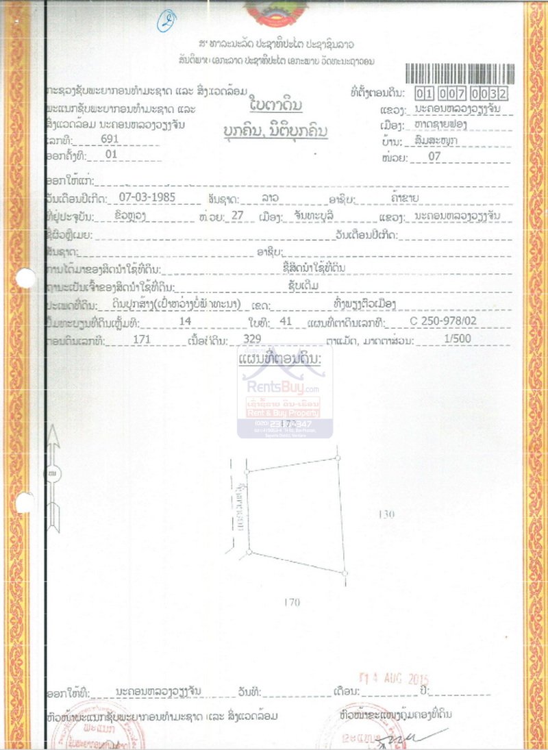 This 392-square-meter property, featuring both land and a house, is now available for $72,000 in Vientiane Capital’s Hatsayfong District, just steps from the Somvang Lek8 Market.