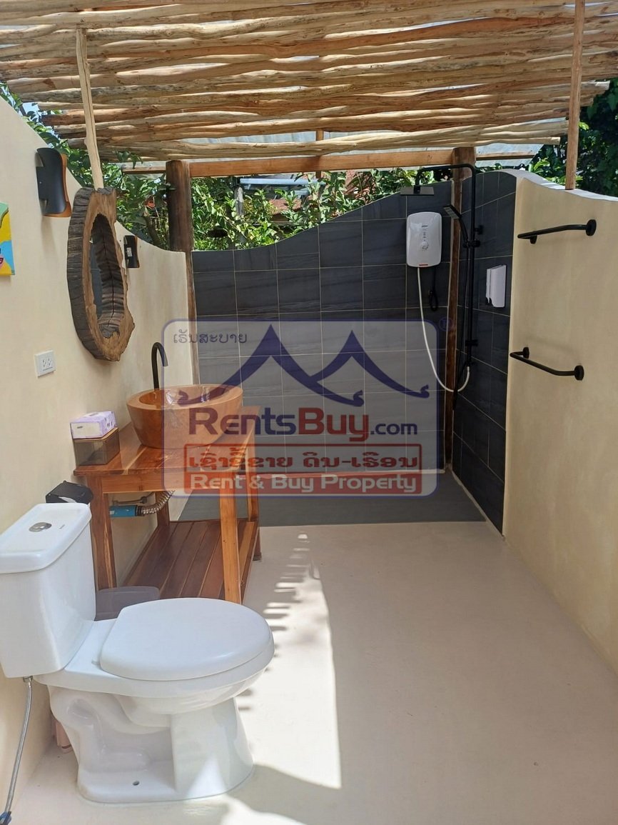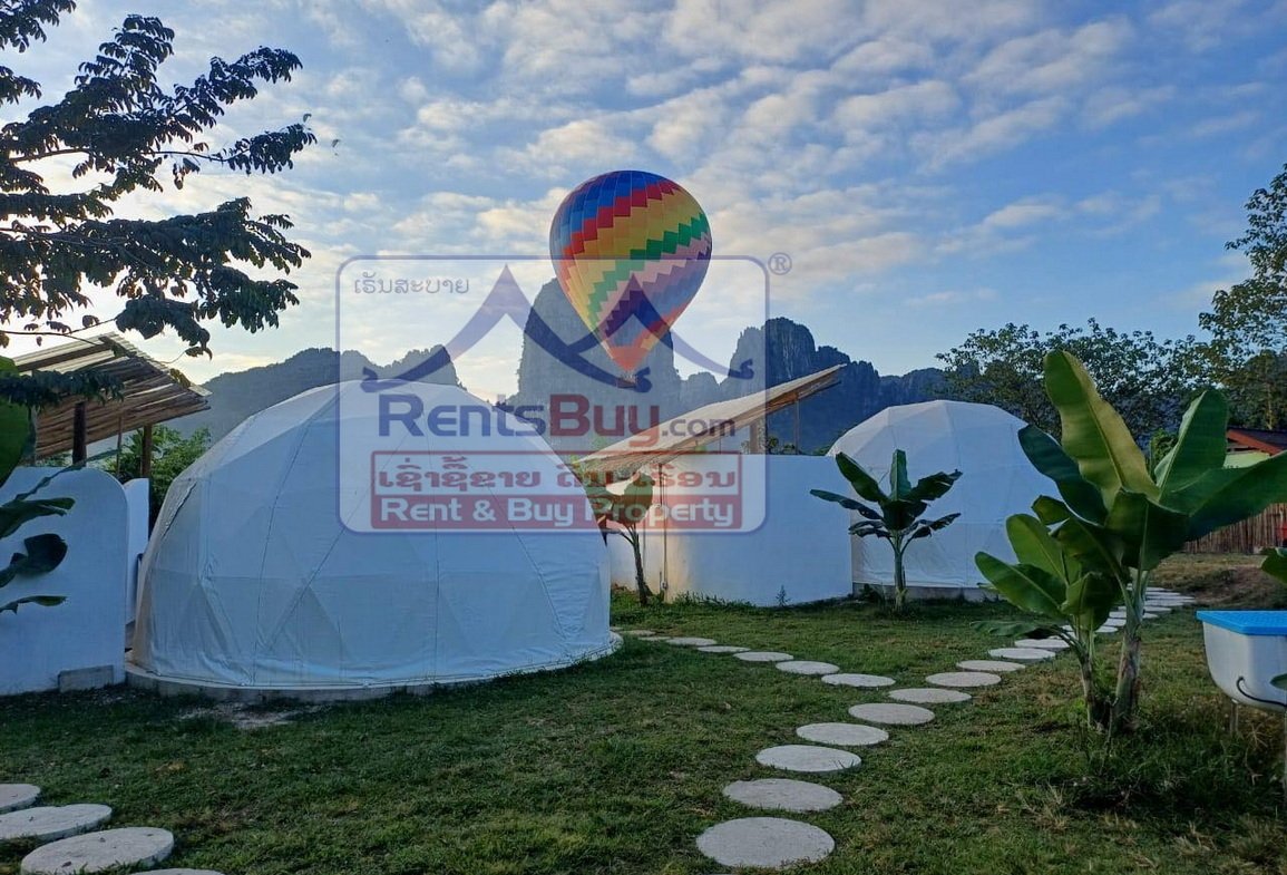 An outstanding investment opportunity awaits just 1 kilometer from the vibrant heart of Vang Vieng, one of Laos’ most popular and fast-growing tourist destinations. Nestled along the picturesque Lagoon Road, this expansive and well-developed property covers 1,838 square meters, offering a tranquil retreat surrounded by natural beauty — ideal for entrepreneurs in the hospitality industry or those seeking a peaceful lifestyle with business potential.