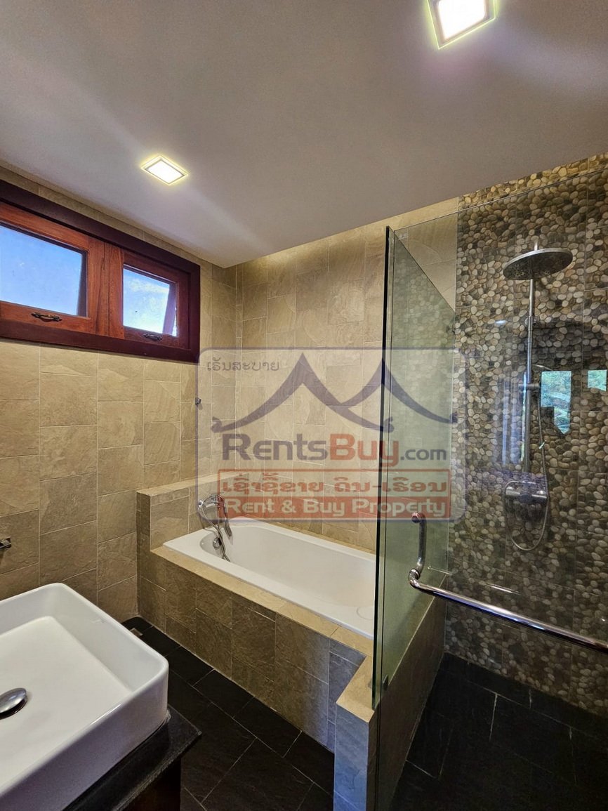 Outside, the house is located in a quiet residential area, offering a calm escape from the city’s bustle while remaining just minutes away from local markets, schools, cafés, and public transport. This balance of privacy and accessibility makes the home a rare find in this desirable part of Vientiane.