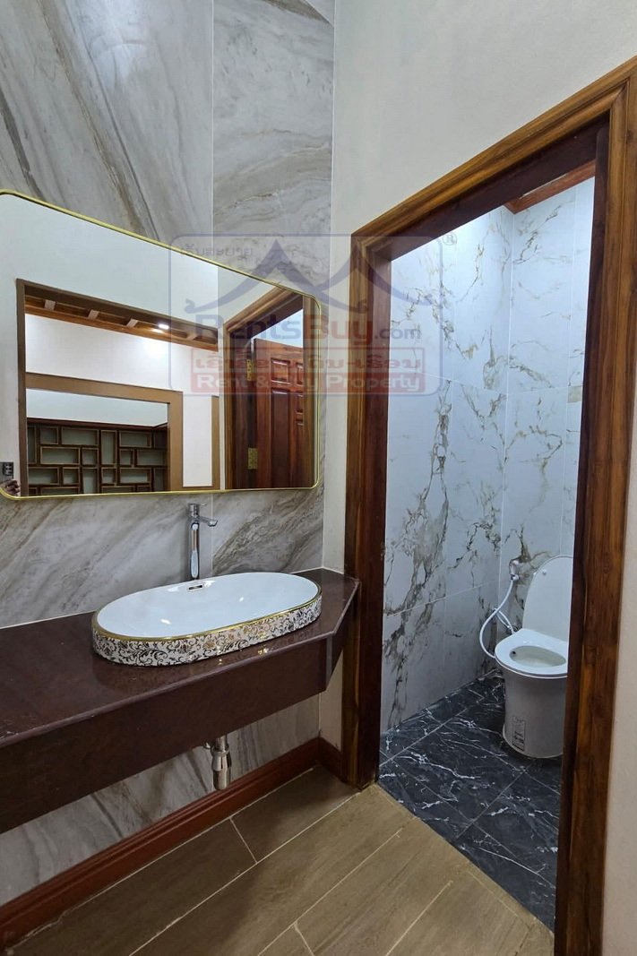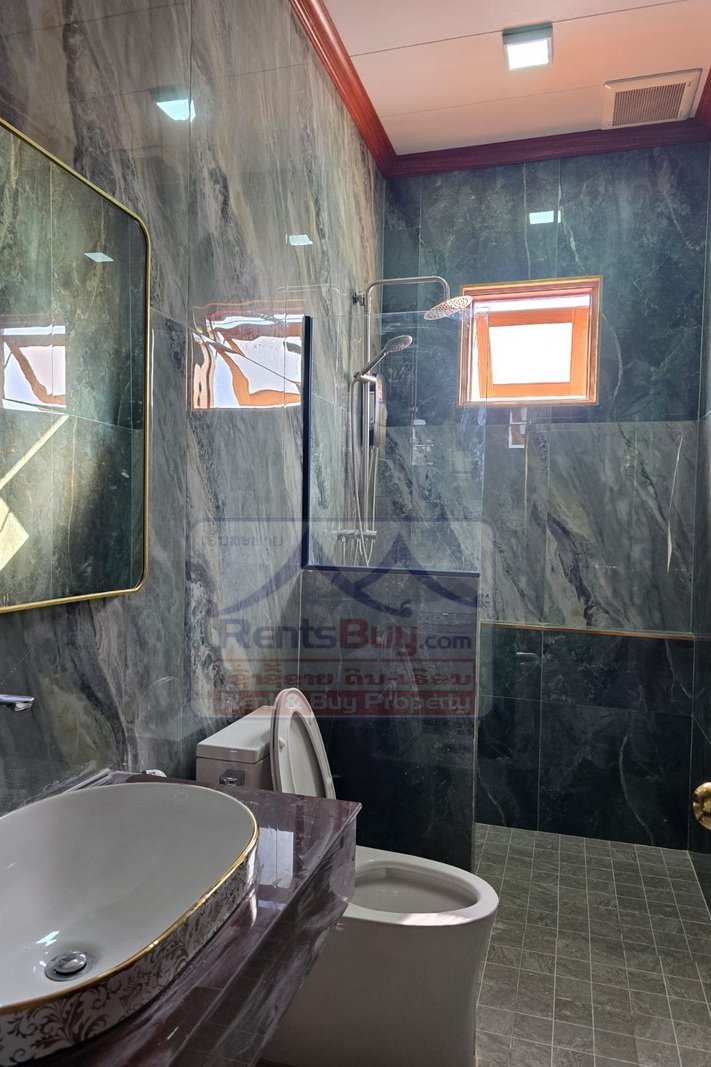 Brand-new house for rent in a prime location near View Mall, offering convenient access to key facilities, shops, and daily amenities. This spacious property features 5 large bedrooms and 6 bathrooms (including 1 outdoor bathroom), thoughtfully designed for comfortable living. The house includes two kitchens—a modern Western kitchen and a traditional Lao kitchen—perfect for a variety of cooking styles, along with one generous living room ideal for relaxing or welcoming guests. The wide outdoor area provides parking space for approximately 9–10 cars, ensuring convenience and security. This home is an excellent choice for a large family, company residence, or office use, and is ready for immediate move-in.