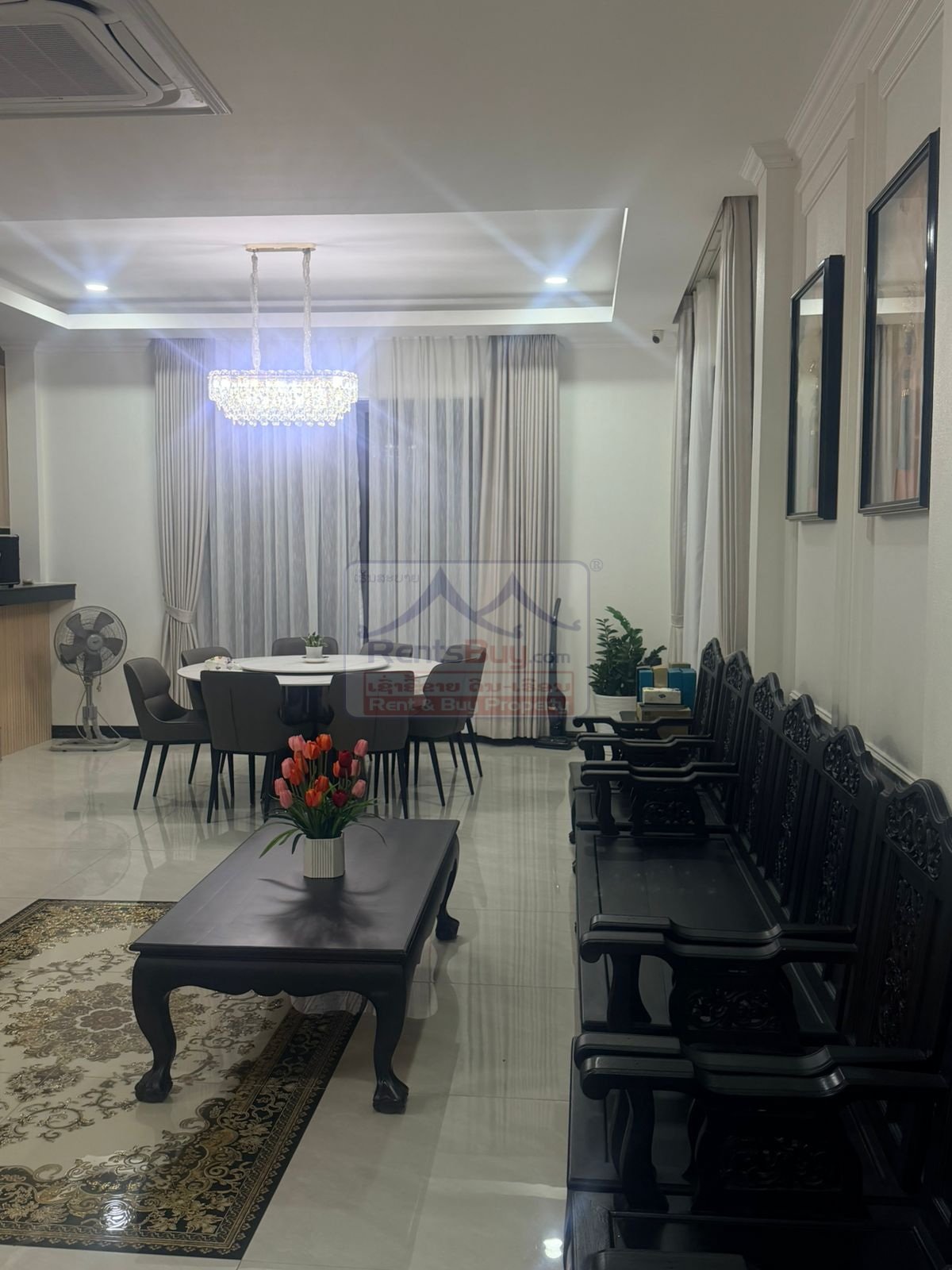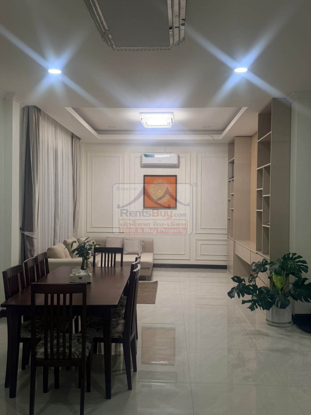 This brand-new modern house is ideally located just minutes from Near Kasemrad International Hospital, offering convenient access to supermarkets, restaurants, banks, and international facilities. The property features 4 spacious bedrooms, each designed with comfort and privacy in mind, and 5 modern bathrooms with high-quality fittings. The house comes fully furnished and ready to move in. It offers a bright and airy living room, an elegant dining area, and a fully equipped modern kitchen with ample storage space. Large windows throughout the home provide abundant natural light, creating a warm and welcoming atmosphere. Outside, the property includes a generous private yard with secure parking for 3–4 cars, making it ideal for families seeking comfort, space, and convenience in a prime Vientiane location.