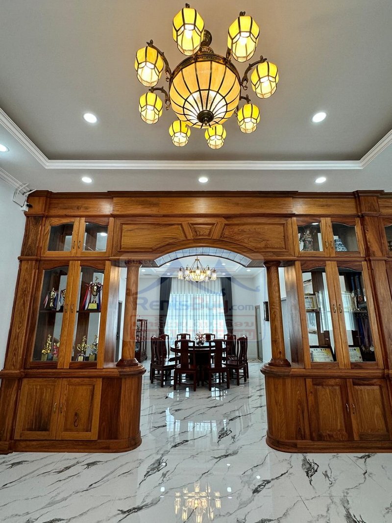 This brand-new luxury residence is ideally positioned near Crowne Plaza Vientiane and Wattay International Airport, offering both prestige and everyday convenience in one of Vientiane’s most accessible locations. Set on a generous 522 square meters of land, the property presents an impressive façade complemented by a thoughtfully designed interior layout that balances elegance with functionality.
