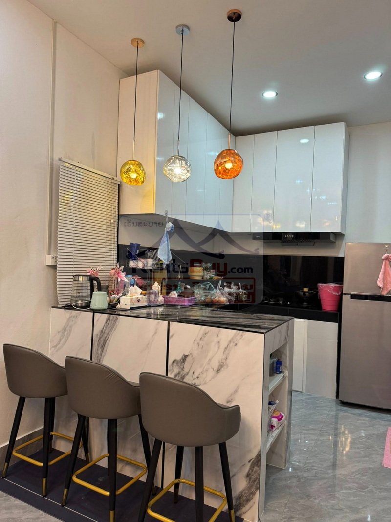 The living room is bright and spacious, creating a welcoming space for family gatherings or entertaining guests. The kitchen and dining area are thoughtfully designed for convenience and practicality. Both bedrooms are generously sized, providing privacy and comfort, while the 2 bathrooms are fully equipped with modern fixtures. The house is fully furnished, allowing for immediate move-in, and comes with a private parking area that accommodates up to 2 cars.