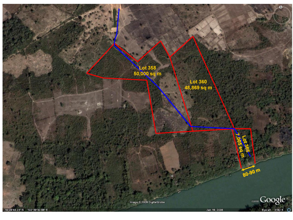 It is 8km past Thagnone Bridge (which is about 20km from Vientiane City) and just before Hadkieng Village. It has three blocksabout 90m at riverfront. All of them have gold land titles. It is suitable for retirement housing development or resort. Total price is USD 300,000. This is negotiable.