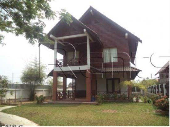 Lao style house with large yard for rent in diplomatic area. The house with fully furnished, has 3 bedrooms, 3 bathrooms including new furniture. The wooden house is in a great condition and also surrounded by security fence. In the garden, there are many fruit trees which can give you a shady atmosphere and fresh air from the green rice paddy field and with sizable parking space for 2-4 cars. In the neighborhood, there are some local fresh market and minimart as well.