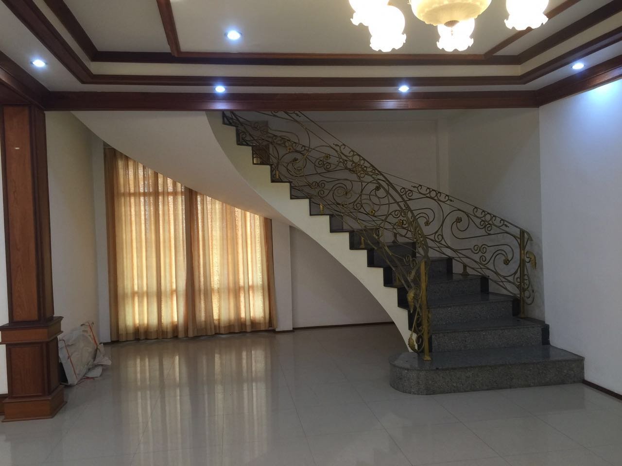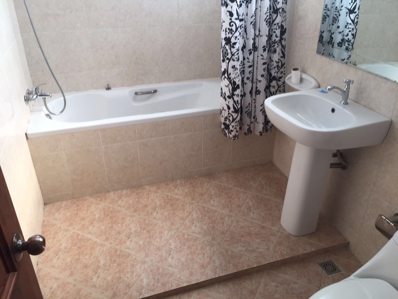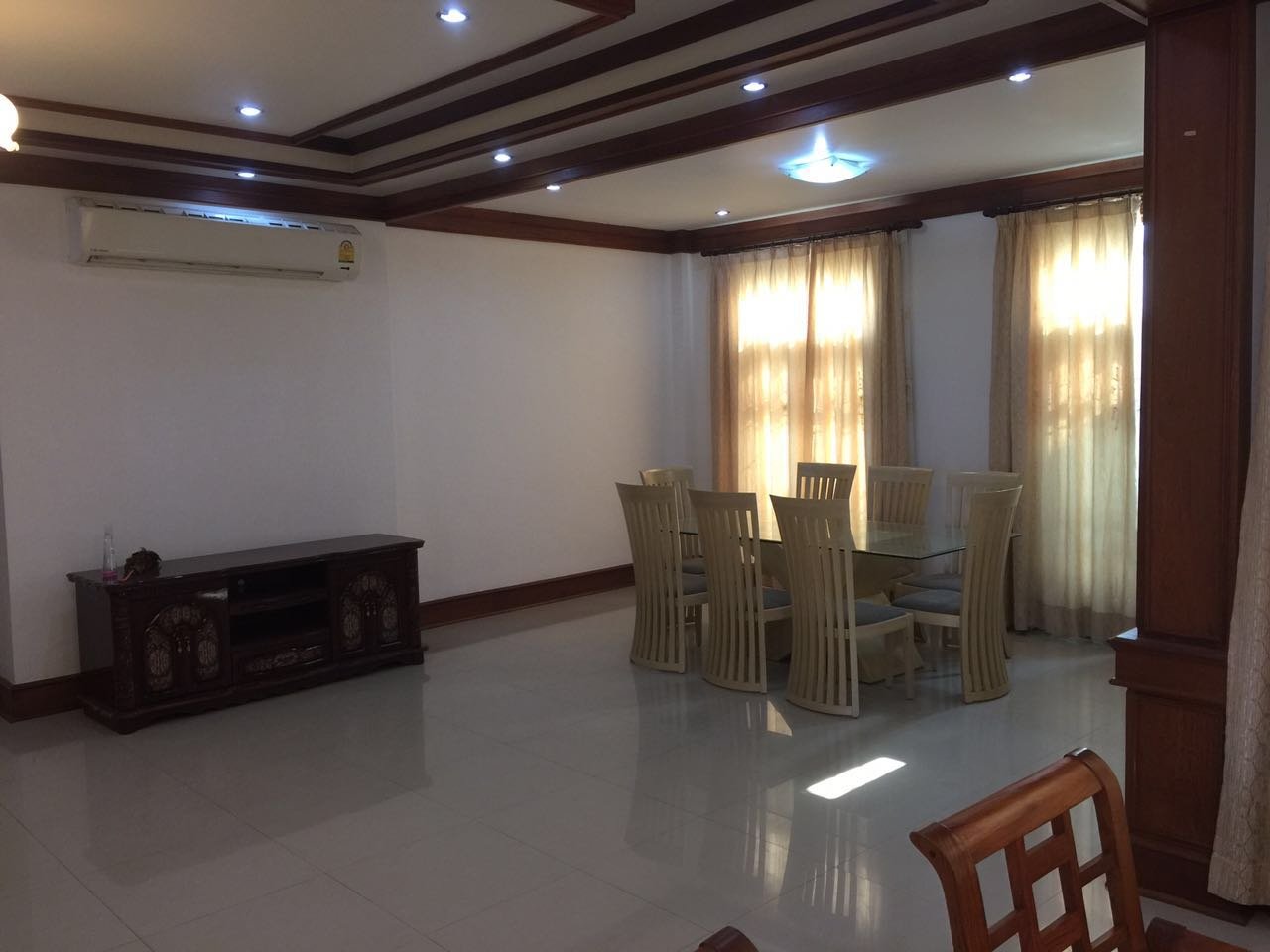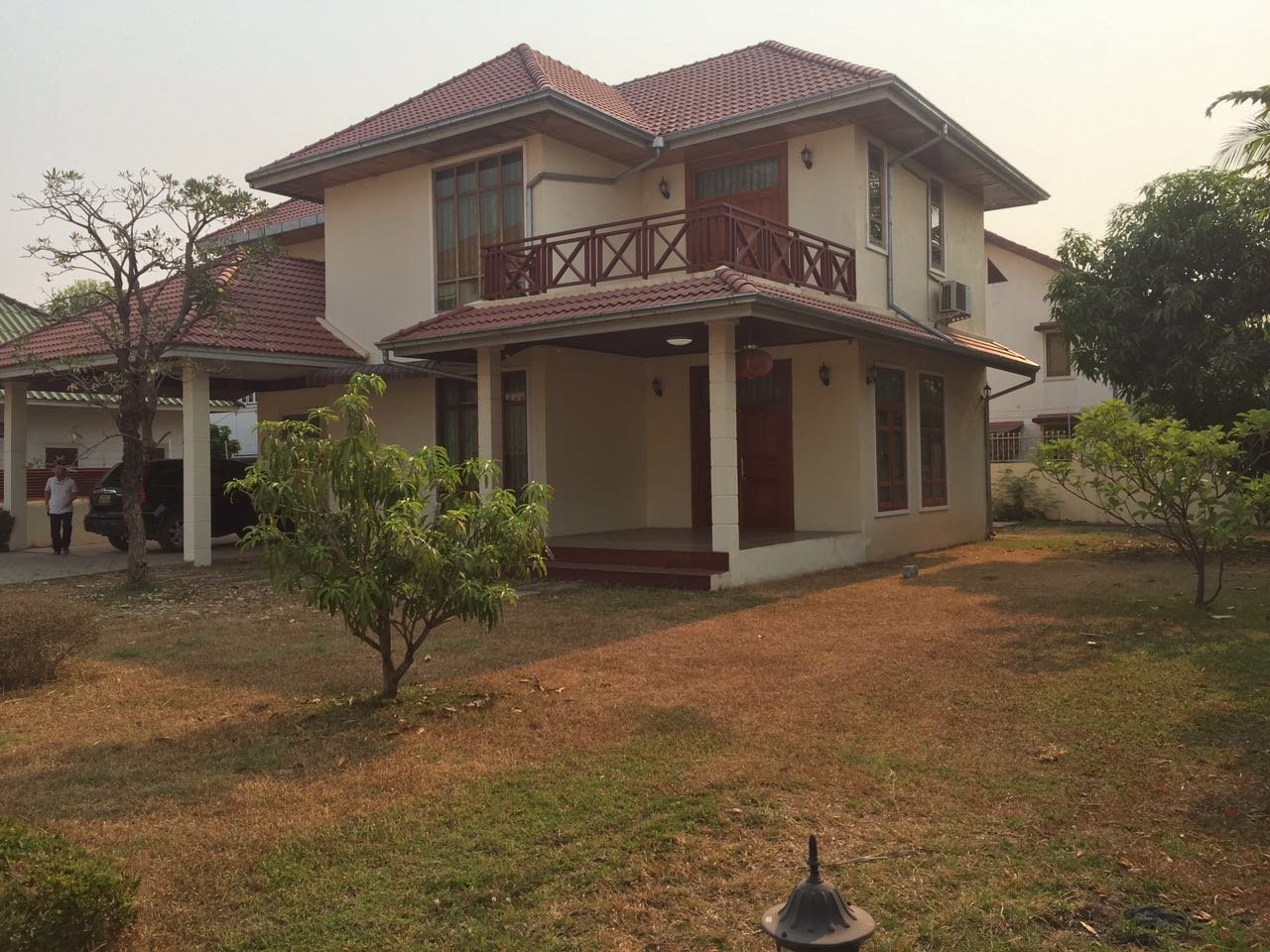 Spacious house for rent, with large shady garden, with fruit trees, a balcony, high secured fence and a parking space for 3-5 cars,it consists of 3 bedrooms, 4 bathrooms, a kitchen and living area with fully furnished. It is large open living area and sizable dinning area. The property is closed to VIS, Sengdara fitness center, 5 minutes drive 103 hospital, M-Point Mart and about 1km to Saphanthong market.
