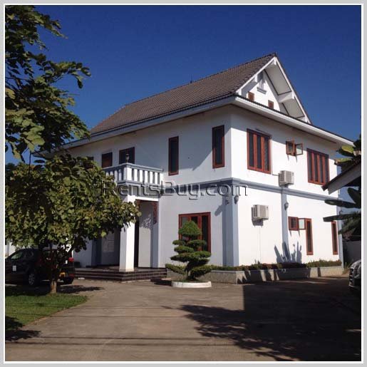 Modern house for rent near Mekong River in Sisattanak district. It consists of 5 comfortable bedrooms, 5 clean bathrooms, spacious kitchen, living room, dining room and large lush lawn garden. The location is close to Clock Tower, Sisattanak District Hospital, Chinaimo mini-mart, pharmacy, shop, school and etc…