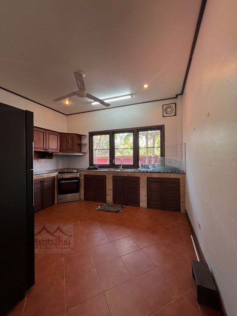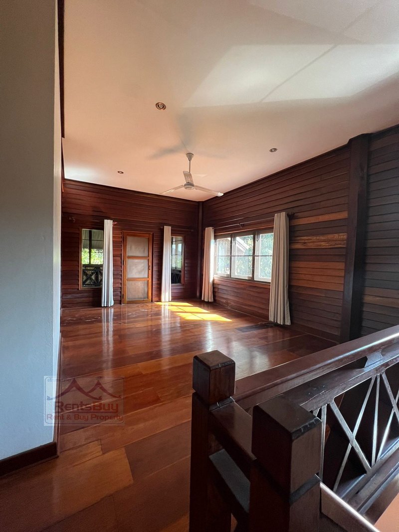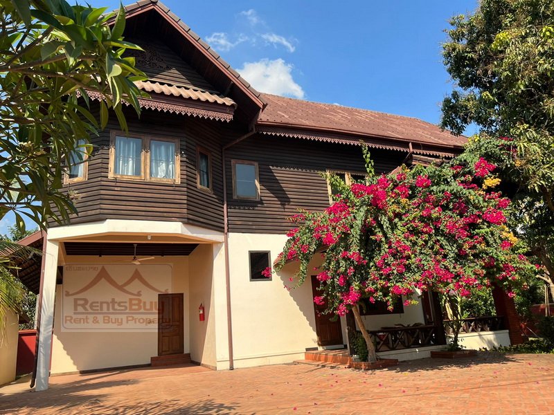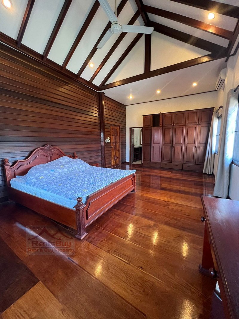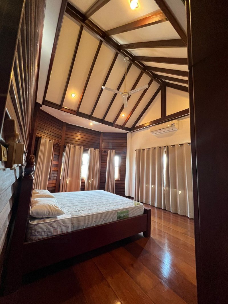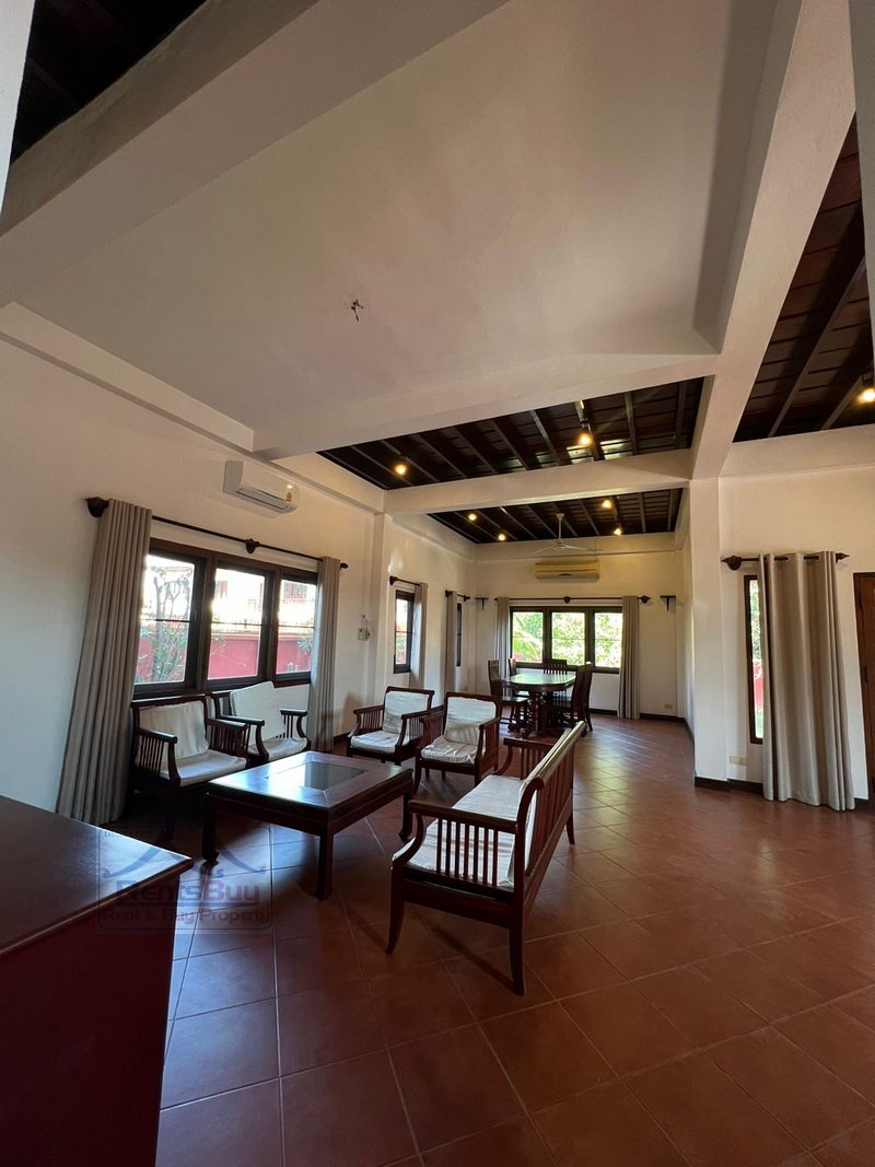 Lao style house with large garden for rent, located in the South of Vientiane City and in diplomatic area, about 4Km from Patuxay. The house has been beautifally decorated by wooden for ceiling, flooring, walling and etc. There are 3 bedrooms with wooden for wardrobe and bed, 4 bathrooms, kitchen, large living room and huge parking space, lush law is in the front, beautiful garden and mature trees. The neighborhoods are Faculty of Laws, WFP, Poly-Technical School, 103 hospital, Kiettisak International School, shop, restaurant, bank, pharmacy and etc…