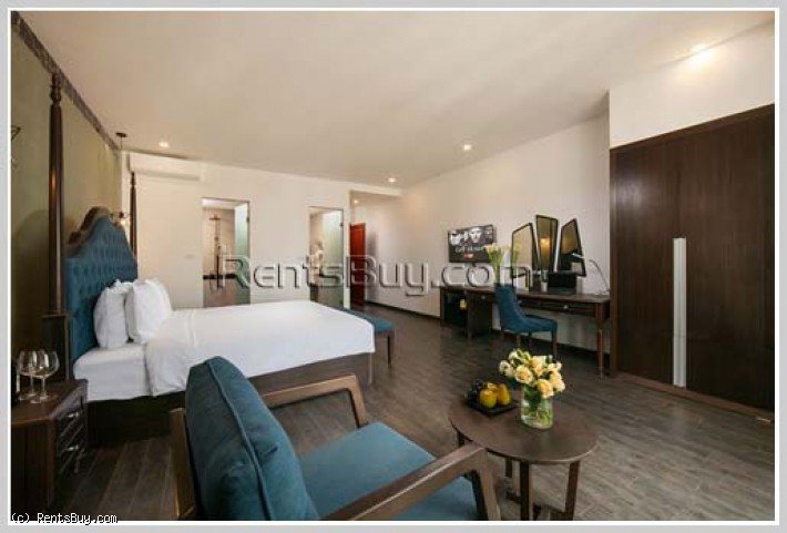 The hotel with swimming pool for sale. It comes with fully furnished (bed, TV, air condition, fan, cabinet, table, chair), located in the financial district area of Vientiane, walkable to Patouxay, Prime's Ministor Office, Morning market and etc