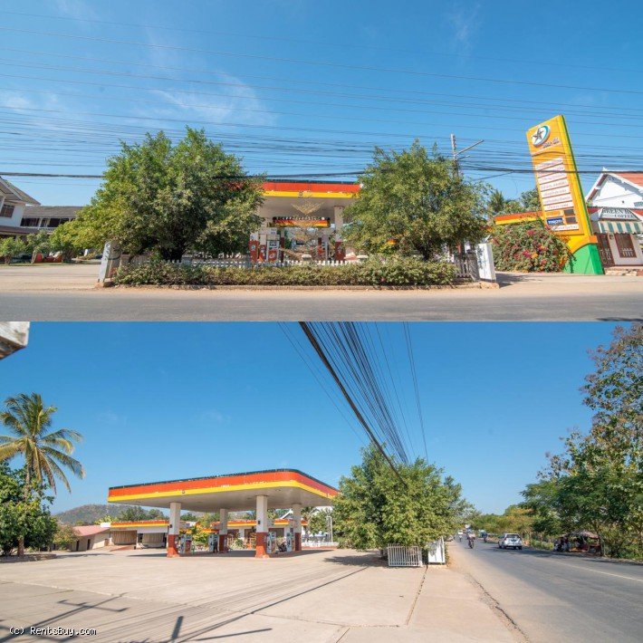 Gas station, restaurant and field football by main road of 13 north road for sale in Louangprabang Province has good view and near Lungprabang Airport, Property for business,