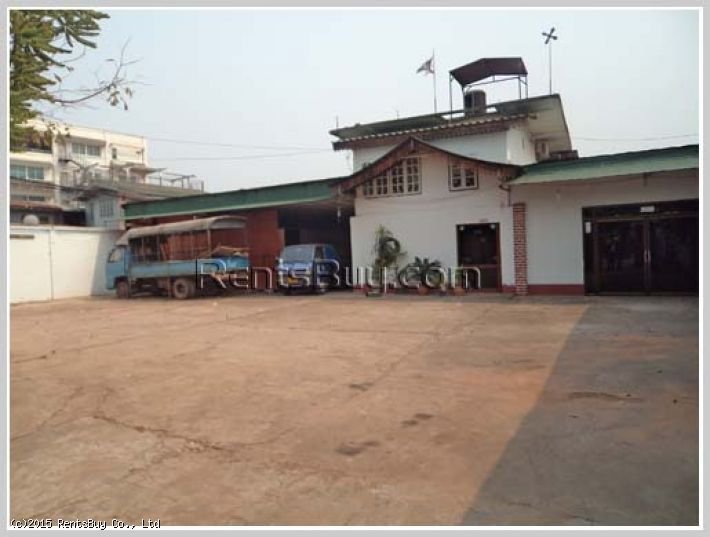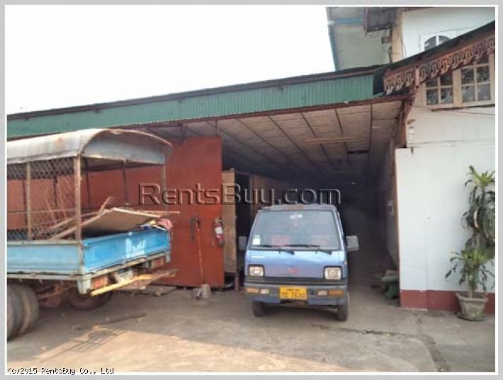 Warehouse in town by main road for rent, located in business area, about 5 walking distance to Patuxai, also for sale in 2,500$ per meter