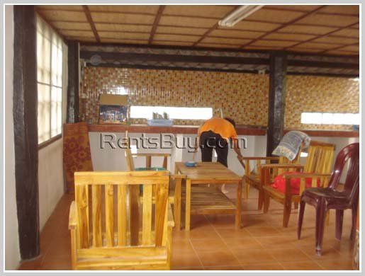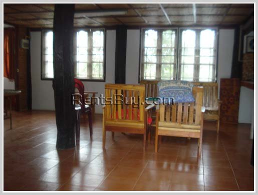 Lao style house with large garden located in Lao Community next to the large fish pond and veranda over it, it is about 2km from city center, around 50m off the main busy road. It comes with furniture.