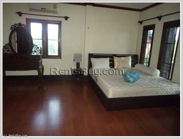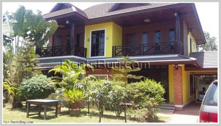 New Lao style house with nice garden located in calm area has nice and large parking space, 200m off the main busy road, around 3km to Vientiane International School or around 10mn drive to city center.