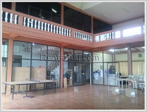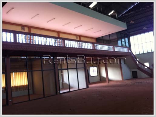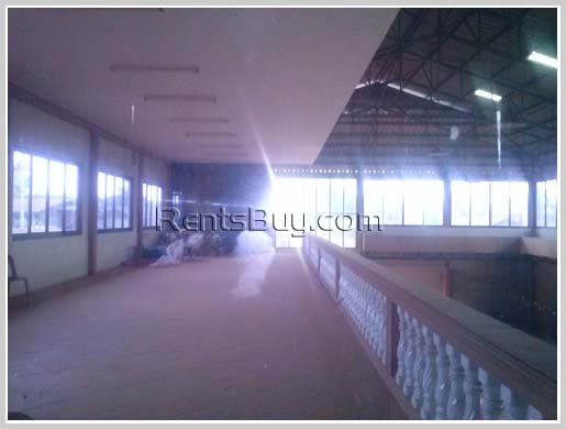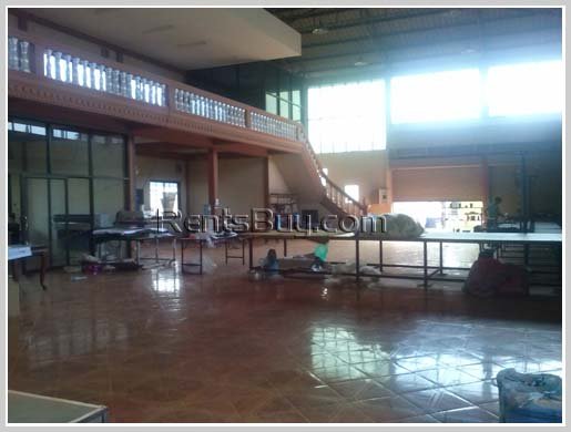 There are two buildings next to each other. The house has two storey: First floor is the large hall and one bathroom. The second floor has two bedroom and one bathroom. The size of the large building is 15m x 30m which it can be a warehouse or garment factory. It is available for sale and optionally for rent at 6,000 USD/month. The houses are located about 500 m off the main road on the way to National University of Laos.