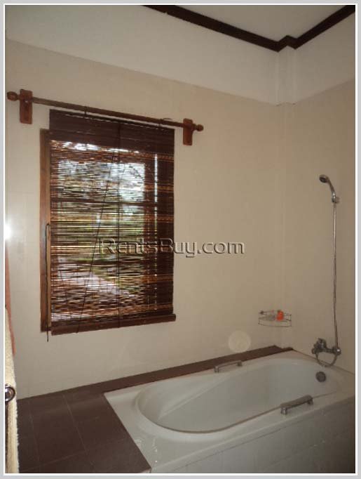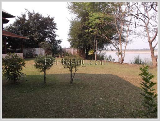 Lao modern house fully furnished has large and beautiful garden by the Mekong River around 12km from the city center.