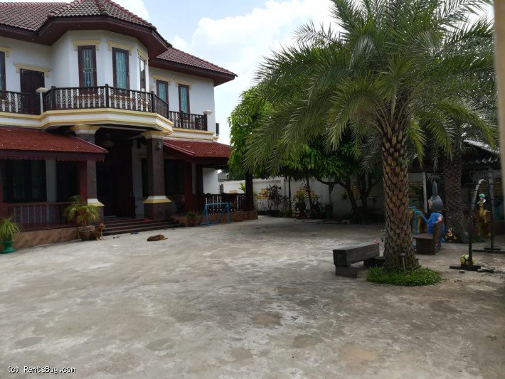 Located in the South of City Center, along the Thadeua Road, about 8 Km from Patuxay. There are 5 bedrooms, 5 bathrooms, kitchen, living room and parking space. Overall property's condition is very good and total area 763sqm. It has high secured fence, the house is situated in developed village, easy access to friendship bridge Lao-Thai.