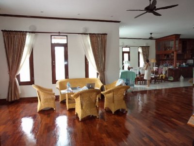 New house for rent near Daokham hotel and large garden.It is suitable for office or running business.It is far from Wattay airport about 1km.