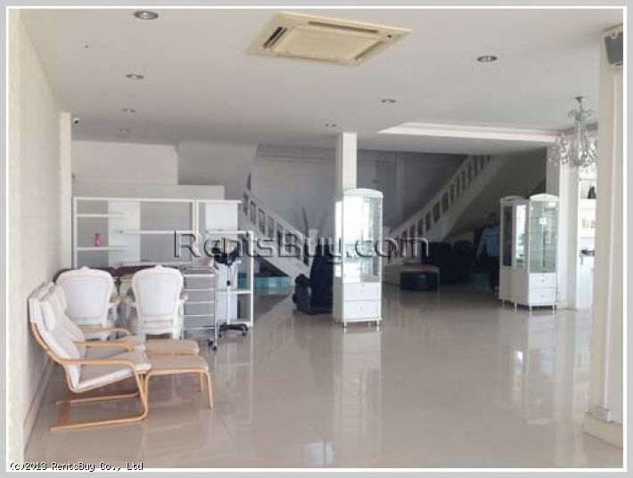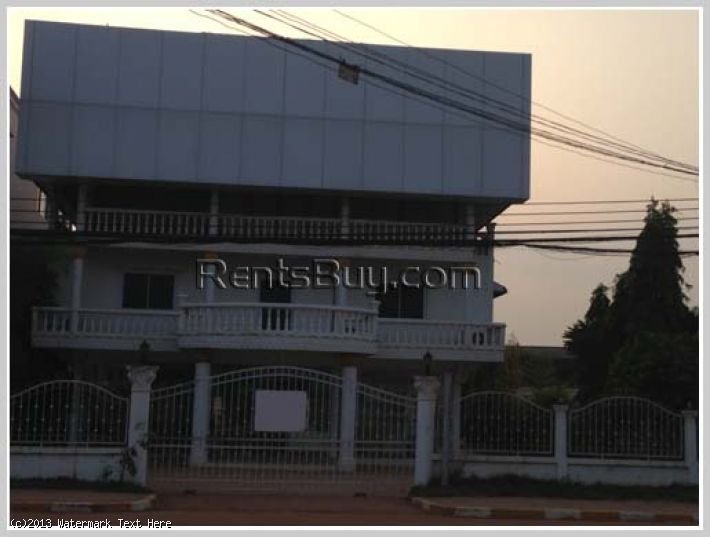 Office building by the main road for rent in neighborhood of Lao Stock Exchange, Lao Itecc and ASEAN Mall. Building size: 580sqm and land surface: 480 sqm, it can accommodate about 5 vehicles