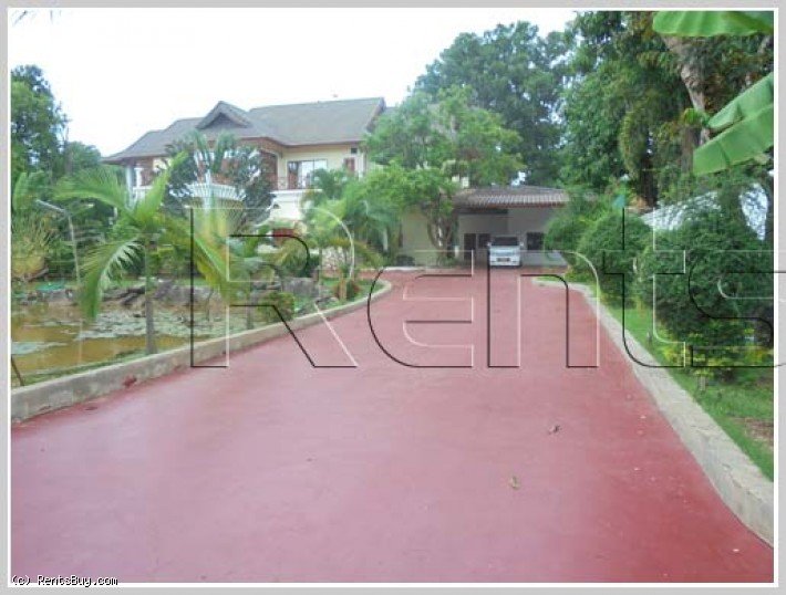 Modern house is large for rent in town, located is good access and lao community, near market and hospital, large garden can parking car 6-10 cars, pond, fruit trees.