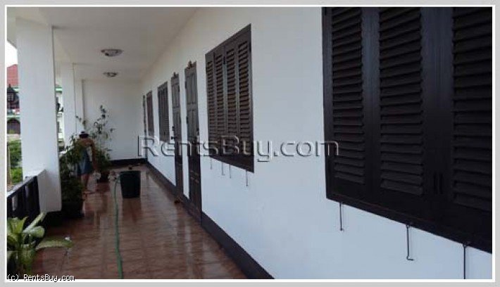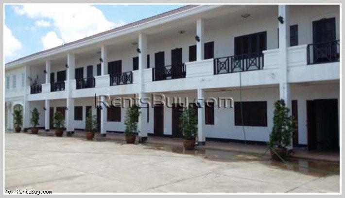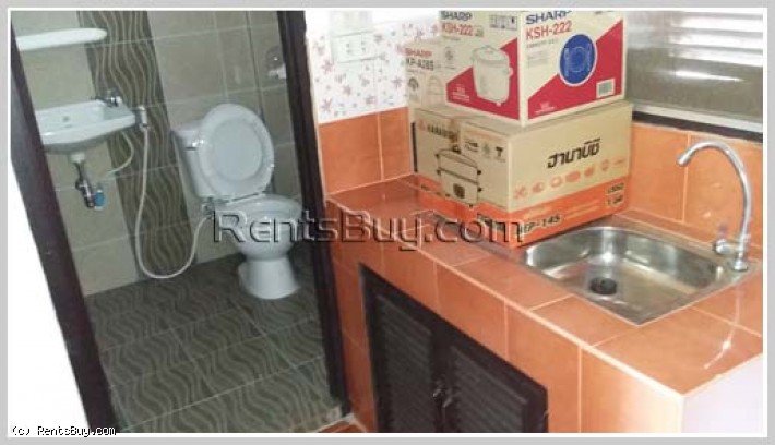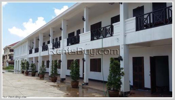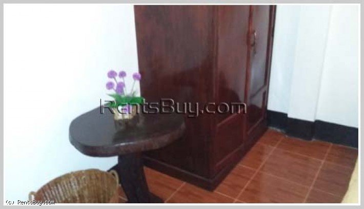 Apartment for rent fully furnished (bed with mattress, chair, table, cabinet, TV, refrigerator, air condition), location by good access, large car parking, near Phontong market and Friendship Hospital.