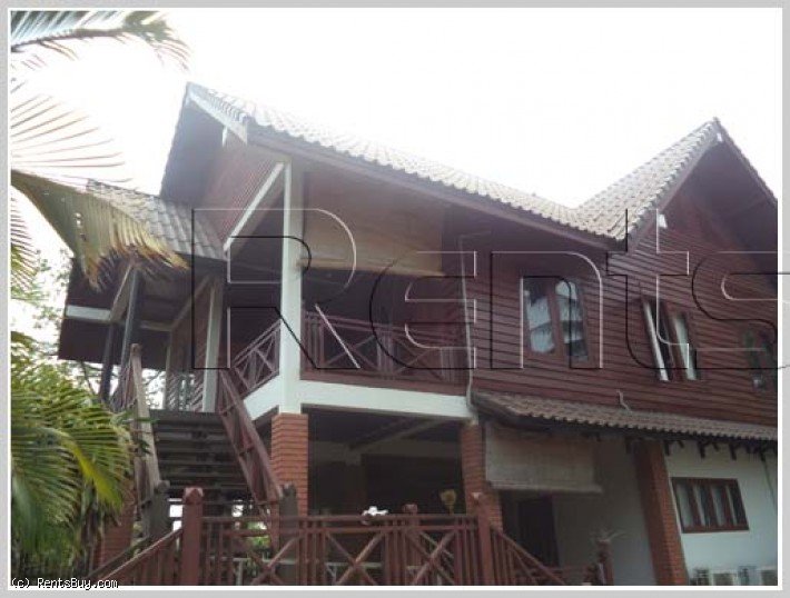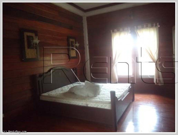 Lao style house with large yard for rent in diplomatic area. This is two-storey house, which consists of 3 bedrooms, 4 bathrooms, and a balcony including new furniture every room. The wooden furniture, wooden floor, ceiling, window’s wooden. The wooden house is in a great condition and also surrounded by security fence. In the garden, there are many fruit trees which can give you shady atmosphere and fresh air from green rice paddy field and with sizable parking space, located 500m to main road, about 2km to Kiettisak International School and Electricity Du Laos Head Quarter.