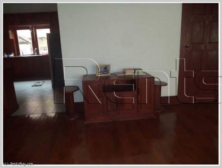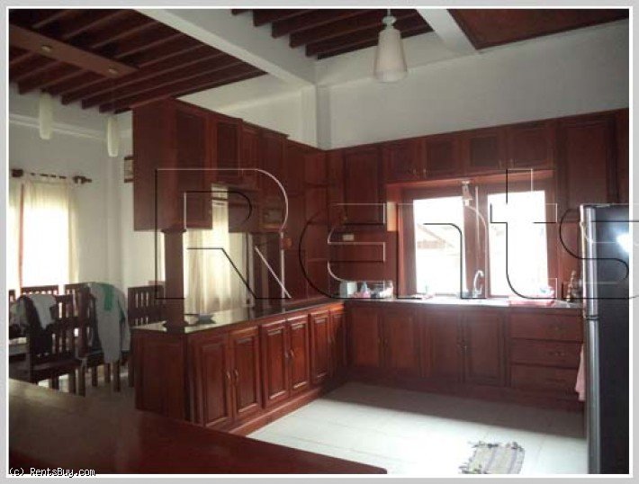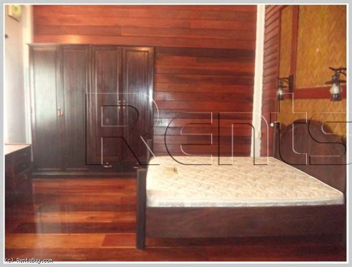 Lao style house with large yard by rice paddy field for rent in diplomatic area. The house with fully furnished, has 4 bedrooms, 5 bathrooms including new furniture. The wooden house is in a great condition and also surrounded by security fence. In the garden, there are many fruit trees which can give you a shady atmostphere and fresh air from the green rice paddy field and with sizable parking space for 3-5 cars. In the neighborhood, there are some local fresh market and minimart as well.