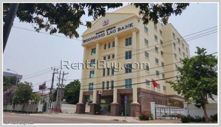 New 7 floor office building on 4 lane main road, Kayson, conveniently located in middle of financial zone, ministries, Prime's Ministor Office, and Patouxay.