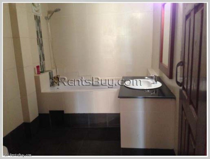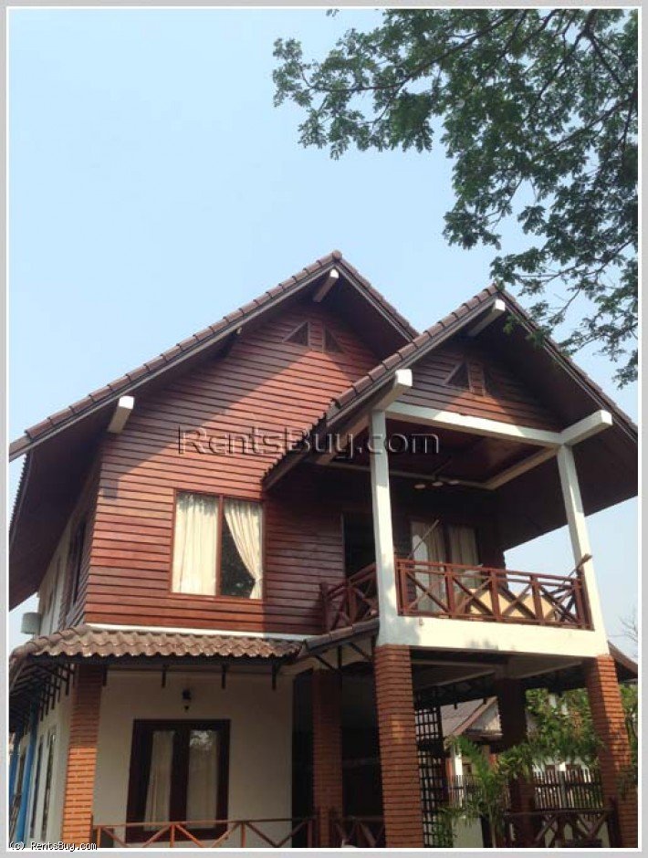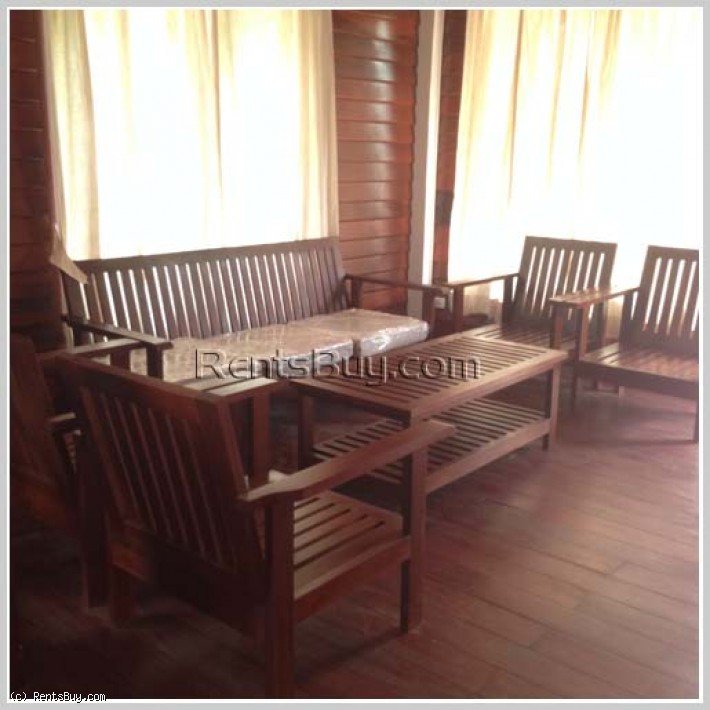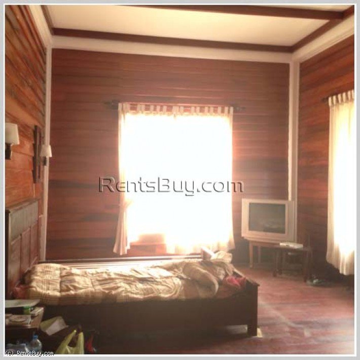 Lao style house with large yard by rice paddy field for rent in diplomatic area. This is two-storey house, which consists of 3 bedrooms, 3 bathrooms, and a balcony including new furniture every room. The wooden furniture, wooden floor, ceiling, window’s wooden. The wooden house is in a great condition and also surrounded by security fence. In the garden, there are many fruit trees which can give you shady atmosphere and fresh air from green rice paddy field and with sizable parking space, located 500m to main road, about 2km to Kiettisak International School and Electricity Du Laos Head Quarter.