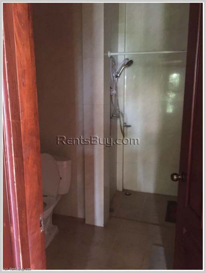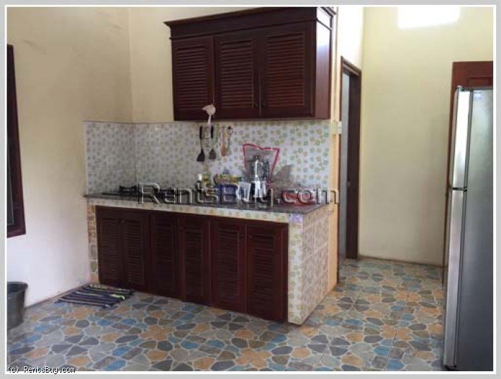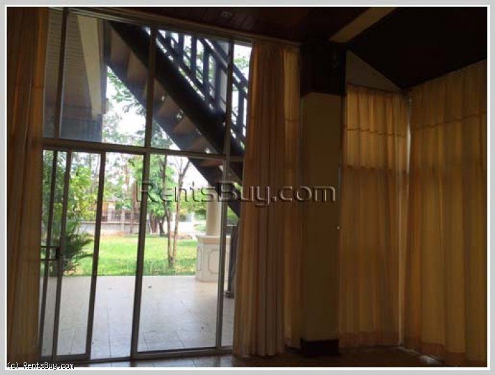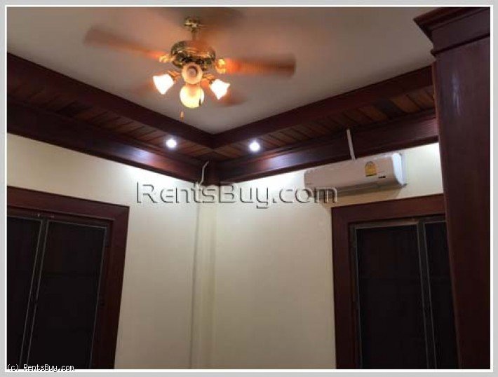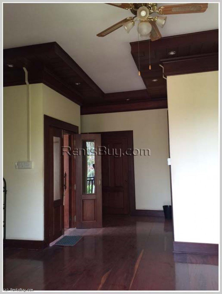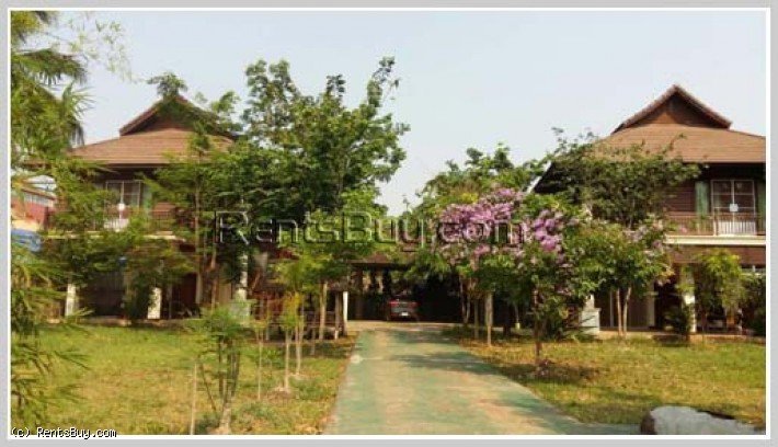 The Lao style house with fully furnished for rent, located in Lao community about 6km from Patouxay with large garden and large parking space, open living room and kitchen, storage room. The premise has 2 identical houses for rent, 1,000 USD per house per month, each house has 3 bedrooms, 2 bathrooms. The zone has market, minimart, nice restaurant, some local fresh market.