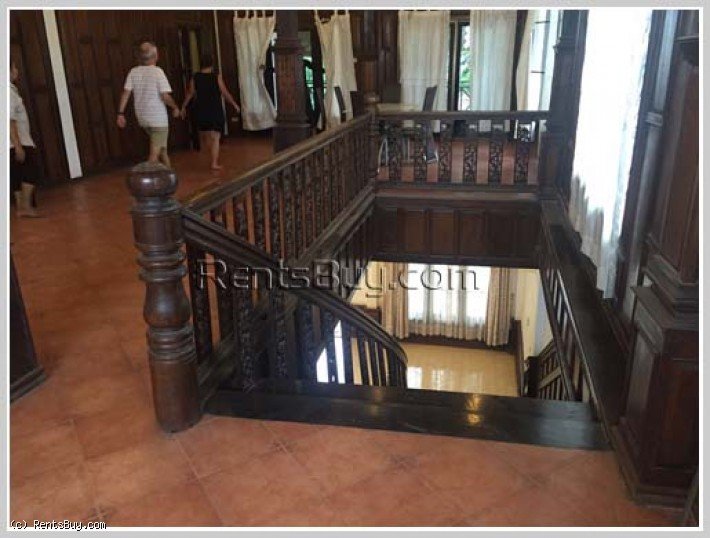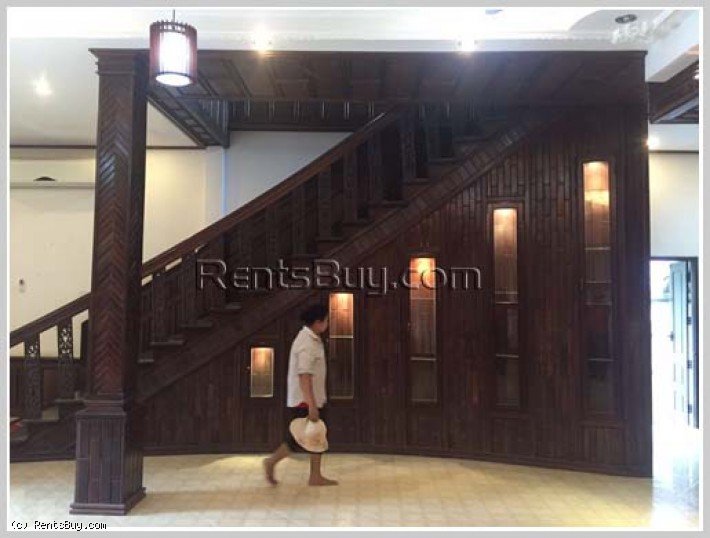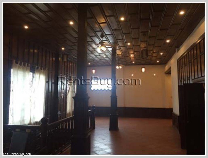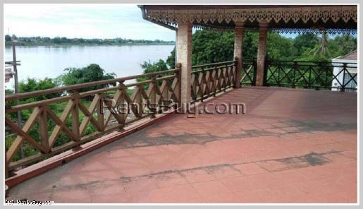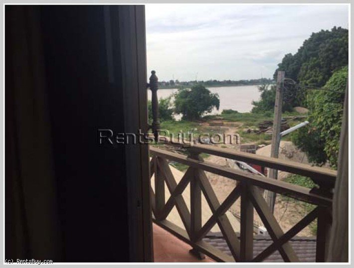 Lao wooden house with fully furnished by Mekong River for rent, it has 4 bedrooms 4bathrooms, located in expatriates living area who love house by Mekong with the panoramic view of mighty Mekong, about 8km to the city center.
