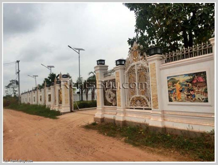 Luxury house for sale with fully furnished near Wattay International Airport in Sithong Road area. House is wooden interior design-the wall, flooring, ceiling, big front door and furniture. There are 6 comfortable bedrooms, 7 clean bathrooms, spacious living room, kitchen, small balcony, large size of front yard with concrete patio, covered car parking and lush lawn, on the land size of 7,351 sqm. In vicinity, there are local market, shop, mini-mart, gasoline station, pharmacy and etc...