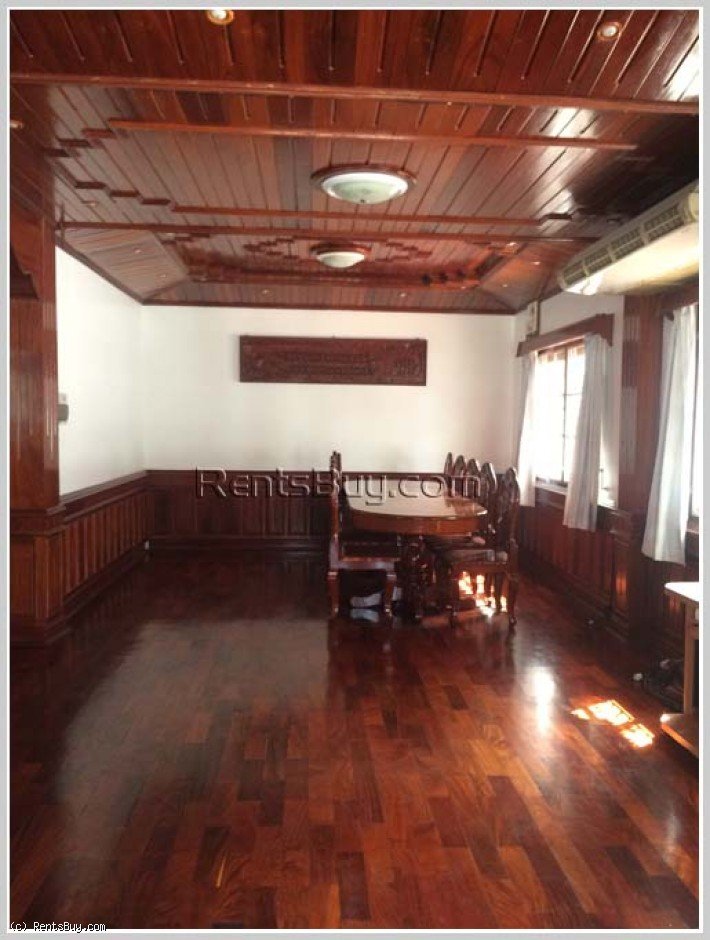 Contemporary house for rent near Panyathip International School and Sengdala Fitness Center. The house is wooden interior design for flooring, ceiling and furniture. It consists of 4 comfortable bedrooms, 4 clean bathrooms, 1 kitchen, 1 spacious living room, dining room and large size of front yard with concrete patio and parking spaces. In vicinity, there are local market, shop, restaurant, pharmacy, mini-mart, school and etc…
