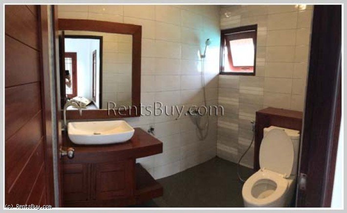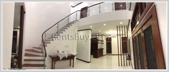 Modern house with swimming pool and large garden for rent, located in the South of City Center near Lao Tobacco Limited and American Embassy about 8 Km from Patuxay, also close to new French Internaitonal School.