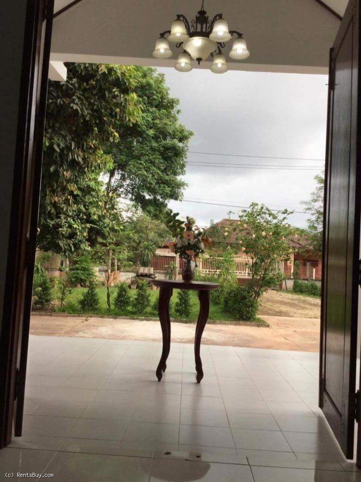 Affordable villa with fully furnished for rent near Nongtha Paradise Land Project, located in good access area, about 3 Km Southeast from City Center. House consists of 3 bedrooms, 3 bathrooms, spacious living room, dining room, kitchen, beautiful balcony and large front yard with car parking lot and garden. In vicinity, there are shop, pharmacy, mini-mart, restaurant, school, local market, 150 Tieng Hosptial and etc...