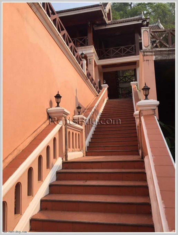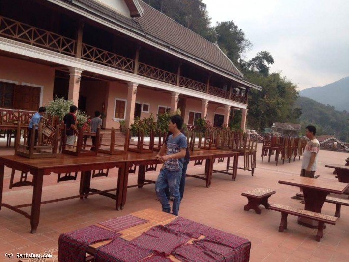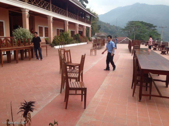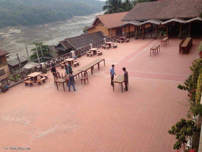 The beautiful hotel with fully furnished near Mekong River for rent and sale, located in Lao community and tourist sites. Pakbang can be reached by boat from Luangprabang province 6 hr. There is a new Mekong Bridge about 15km to Sayabouly Province from this hotel.