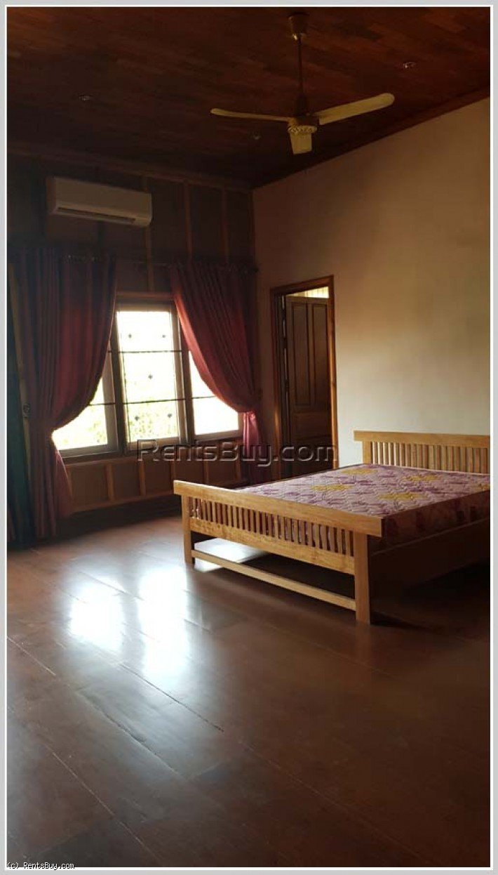 The house has wooden design with two floors, comprising of 4 beautiful bedrooms, 5 bathrooms, kitchen, living room, nice balcony for viewing the Mekong river, large car parking space, beautiful garden with some big trees.
