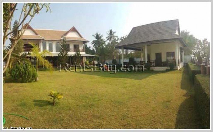 The house by Mekong with fully furnished and large garden, this property has 3 bedrooms, 4 bathrooms with balcony for enjoying the view on the second floor and total area 1,132sqm, about 20mn far from Vientiane Center to South-East.