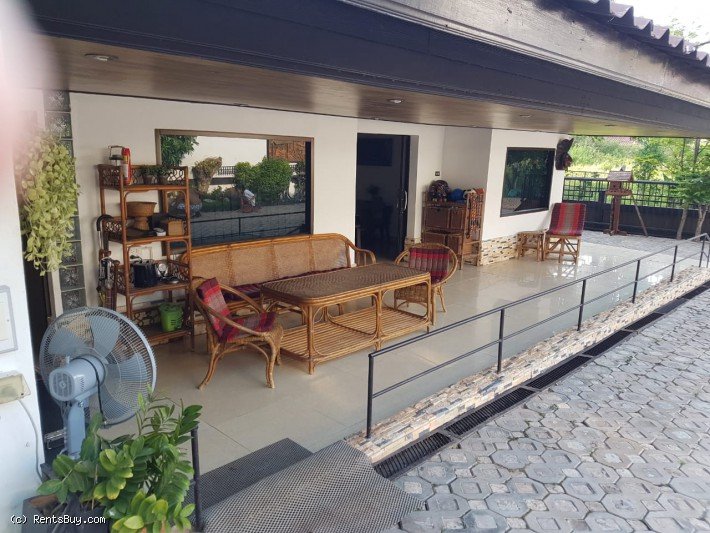 The main house has 3 bedrooms, 2 bathrooms, living room, office room, kitchen and stockroom