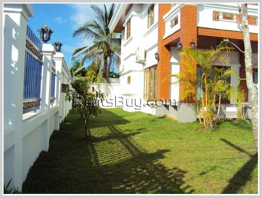 It is located in very secured location in the foreigner community with the community guard (about 8 similar houses in the area), built with well-designed American Standard, in the beginning of next year the owner will build the swimming pool for the community, event hall, the big super market is being built in a 5mn walking distance. It is about 1.5km to Vientiane International School. It comes with the fully furnished, about 15mn to city center by driving. This house has separate maid room, and extra store room.