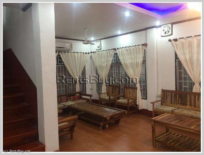 The nice house has 4 bedrooms and 5 bathrooms in town, some furniture is make by wood, located in business area and good access, about 5 minutes drive to Sapanthong market, Joma 2, Sengdara fitness center and international school and about 5 minutes to Pizza company (Phonsinuan village). It is conveniently located in a quick and easy access to amenities. It is next to minor road and from main road around 315m. It is also available for sale at ID 3215 and total area 500m.