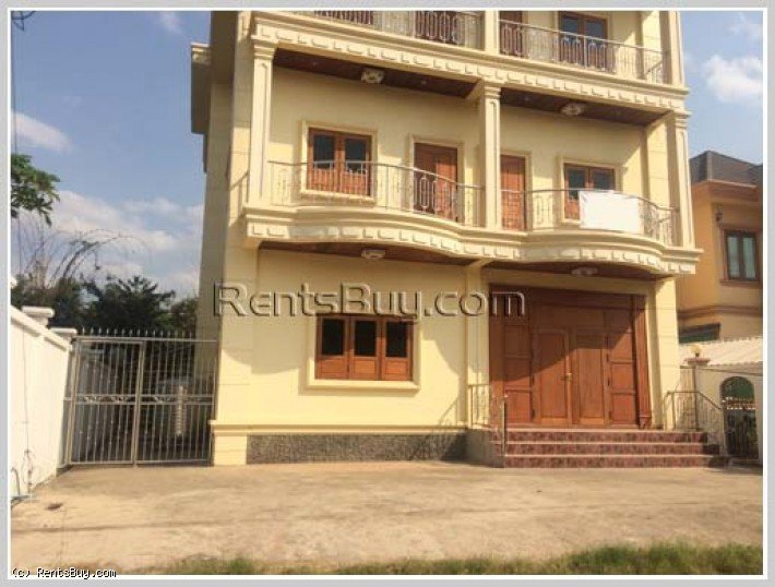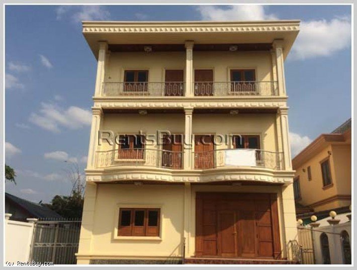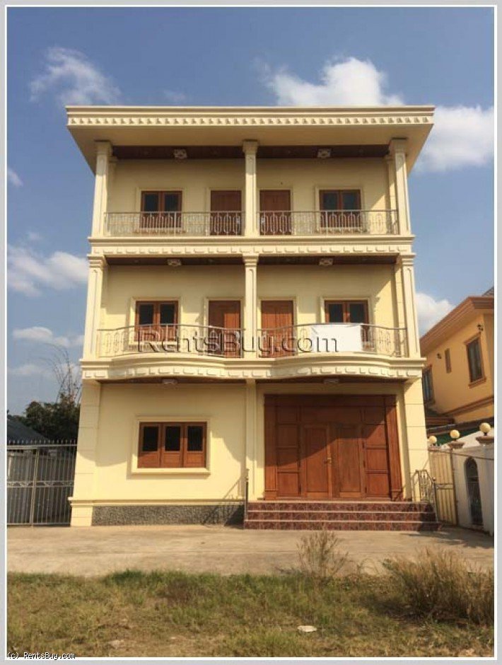 New shop-house by pave road for rent, located in the South of City Center, about 150 m from Kamphangmeuang Road and about 8 km from Patuxay. It consists of 5 bedrooms, 5 bathrooms, living room, kitchen and car parking space. Its location is also close to local market, Setthathirath hospital, high school, restaurants, etc…